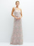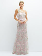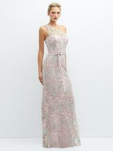 エレガントなボタニカル刺繍が施されたワンショルダーロングドレス。