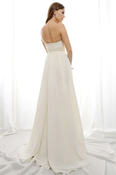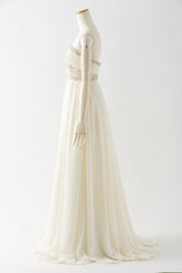 - フロントからバックにかけて全面的にビーズ刺繍が施されたエレガントなウェディングドレス