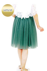ふんわりとボリュームのある膝丈チュールスカート