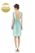 - 大きく開いた後ろ姿にリボンがデザインされた、タイトなシルエットの膝丈ドレス