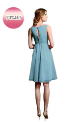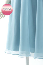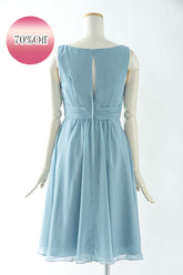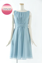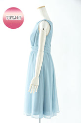 - 落ち着いたくすみブルーが大人っぽい膝丈ドレス