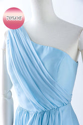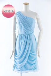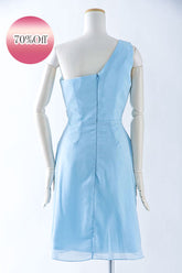 - 薄い水色の爽やかなカラーのワンショルダードレス