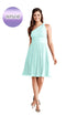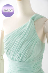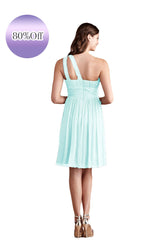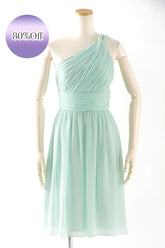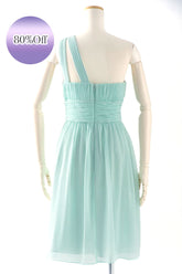 - 少しグリーンの入った薄いブルーが美しい、ワンショルダーショートドレス