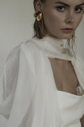 ・ Style with swept-back hair or a whispy updo to allow this dramatic earring the space to move.