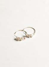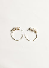 An abstract take on the classic hoop— freshwater pearls cluster along the top of a gold-plated hoop to create a full-bodied feel without too much drama.