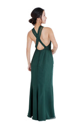 首元とバックスタイルがクロスにデザインされたタイトなシルエットのロングドレス