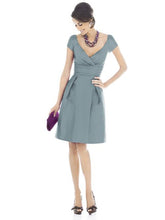 パリッと光沢感のあるポー・ドゥ・ソワ生地の膝丈ドレス