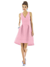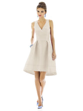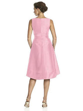 節の入った高級感のあるデュピオニ生地の膝丈ドレス