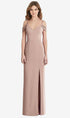 【NEW】【STYLE: 1517】オフショルダー シフォン トランペット ガウン 前面 スリット【COLOR: Bliss】【SIZE: 00-30W】