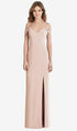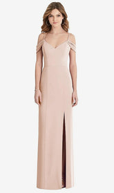 【NEW】【STYLE: 1517】オフショルダー シフォン トランペット ガウン 前面 スリット【COLOR: Cameo】【SIZE: 00-30W】