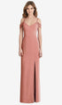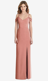 【NEW】【STYLE: 1517】オフショルダー シフォン トランペット ガウン 前面 スリット【COLOR: Desert Rose】【SIZE: 00-30W】
