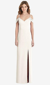 【NEW】【STYLE: 1517】オフショルダー シフォン トランペット ガウン 前面 スリット【COLOR: Ivory】【SIZE: 00-30W】
