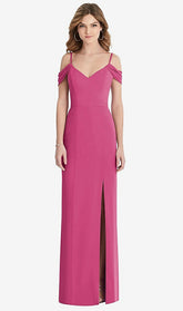 【NEW】【STYLE: 1517】オフショルダー シフォン トランペット ガウン 前面 スリット【COLOR: Tea Rose】【SIZE: 00-30W】