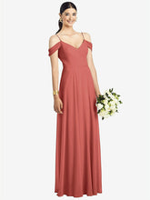 【NEW】【STYLE: 1526】コールドショルダー Vバック シフォン マキシ ドレス【COLOR: Coral Pink】【SIZE: 00-30W】