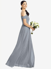 【NEW】【STYLE: 1526】コールドショルダー Vバック シフォン マキシ ドレス【COLOR: Platinum】【SIZE: 00-30W】