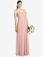 【NEW】【STYLE: 1526】コールドショルダー Vバック シフォン マキシ ドレス【COLOR: Rose - PANTONE Rose Quartz】【SIZE: 00-30W】