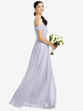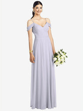 【NEW】【STYLE: 1526】コールドショルダー Vバック シフォン マキシ ドレス【COLOR: Silver Dove】【SIZE: 00-30W】