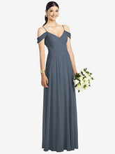 【NEW】【STYLE: 1526】コールドショルダー Vバック シフォン マキシ ドレス【COLOR: Silverstone】【SIZE: 00-30W】
