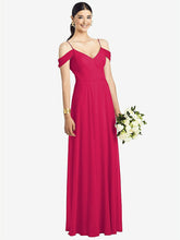 【NEW】【STYLE: 1526】コールドショルダー Vバック シフォン マキシ ドレス【COLOR: Vivid Pink】【SIZE: 00-30W】