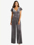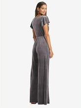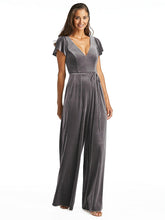 【NEW】【STYLE: 1542】フラッター スリーブ ベルベット ジャンプスーツ ポケット付き【COLOR: Caviar Gray】【SIZE: 00-30W】