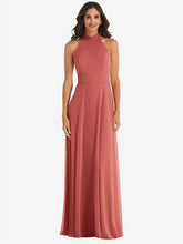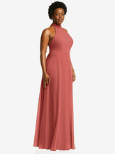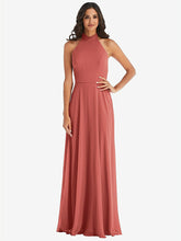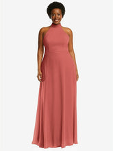 上品でエレガントで真剣にスタイリッシュなこのルックスシフォンホルターマキシドレスは、背中の首にスカーフタイの閉鎖を閉じた低いバルクトの背中と上品なスタンドカラーを特徴としています。修正されたサークルスカートは、古典的な魅力を醸し出す時代を超越したシルエットで外観を完成させます。