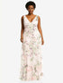 【NEW】【STYLE: 1549】ディープ Vネック シフォン マキシ ドレス【COLOR: Blush Garden】【SIZE: 00-30W】