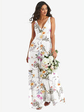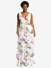 【NEW】【STYLE: 1549】ディープ Vネック シフォン マキシ ドレス【COLOR: Butterfly Botanica Ivory】【SIZE: 00-30W】