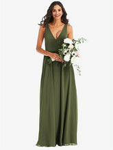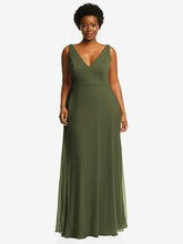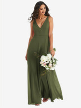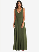 【NEW】【STYLE: 1549】ディープ Vネック シフォン マキシ ドレス【COLOR: Olive Green】【SIZE: 00-30W】