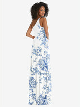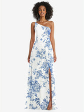 【NEW】【STYLE: 1555】ワンショルダー シフォン マキシ ドレス シアレッド フロント スリット【COLOR: Cottage Rose Dusk Blue】【SIZE: 00-30W】