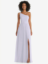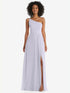 【NEW】【STYLE: 1555】ワンショルダー シフォン マキシ ドレス シアレッド フロント スリット【COLOR: Silver Dove】【SIZE: 00-30W】