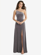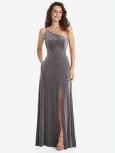 【NEW】【STYLE: 1556】ワンショルダー スパゲッティ ストラップ ベルベット マキシ ドレス ポケット付き【COLOR: Caviar Gray】【SIZE: 00-30W】