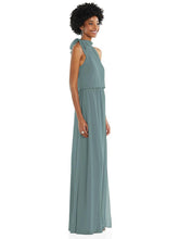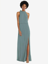 【NEW】【STYLE: 1562】スカーフ ネクタイ 高 首 ブルーソン ボディス マキシ ドレス 前面 スリット【COLOR: Icelandic】【SIZE: 00-30W】