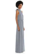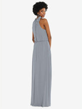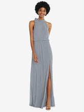 【NEW】【STYLE: 1562】スカーフ ネクタイ 高 首 ブルーソン ボディス マキシ ドレス 前面 スリット【COLOR: Platinum】【SIZE: 00-30W】