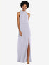 【NEW】【STYLE: 1562】スカーフ ネクタイ 高 首 ブルーソン ボディス マキシ ドレス 前面 スリット【COLOR: Silver Dove】【SIZE: 00-30W】