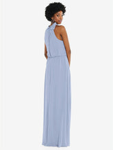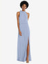 【NEW】【STYLE: 1562】スカーフ ネクタイ 高 首 ブルーソン ボディス マキシ ドレス 前面 スリット【COLOR: Sky Blue】【SIZE: 00-30W】