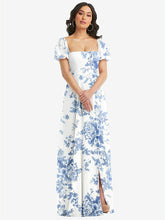 【NEW】【STYLE: 1567】パフ スリーブ シフォン マキシ ドレス 前面 スリット【COLOR: Cottage Rose Dusk Blue】【SIZE: 00-30W】