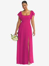 【NEW】【STYLE: 1568】フラッター 袖 スクープ オープンバック シフォン マキシ ドレス【COLOR: Think Pink】【SIZE: 00-30W】