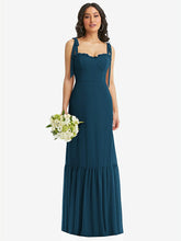 【NEW】【STYLE: 1570】タイショルダー ビュスティア ボディス フリルヘム マキシ ドレス【COLOR: Atlantic Blue】【SIZE: 00-30W】