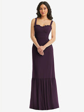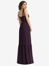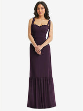 【NEW】【STYLE: 1570】タイショルダー ビュスティア ボディス フリルヘム マキシ ドレス【COLOR: Aubergine】【SIZE: 00-30W】