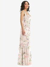 【NEW】【STYLE: 1570】タイショルダー ビュスティア ボディス フリルヘム マキシ ドレス【COLOR: Blush Garden】【SIZE: 00-30W】