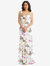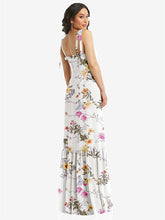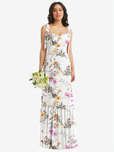 【NEW】【STYLE: 1570】タイショルダー ビュスティア ボディス フリルヘム マキシ ドレス【COLOR: Butterfly Botanica Ivory】【SIZE: 00-30W】