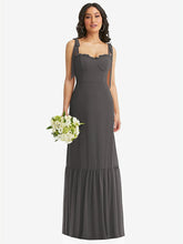 【NEW】【STYLE: 1570】タイショルダー ビュスティア ボディス フリルヘム マキシ ドレス【COLOR: Caviar Gray】【SIZE: 00-30W】