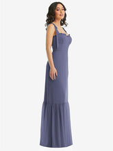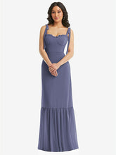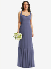【NEW】【STYLE: 1570】タイショルダー ビュスティア ボディス フリルヘム マキシ ドレス【COLOR: French Blue】【SIZE: 00-30W】
