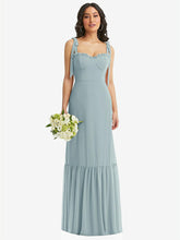 【NEW】【STYLE: 1570】タイショルダー ビュスティア ボディス フリルヘム マキシ ドレス【COLOR: Morning Sky】【SIZE: 00-30W】