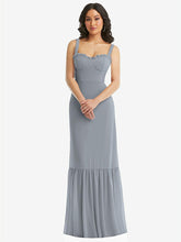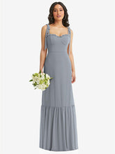 【NEW】【STYLE: 1570】タイショルダー ビュスティア ボディス フリルヘム マキシ ドレス【COLOR: Platinum】【SIZE: 00-30W】