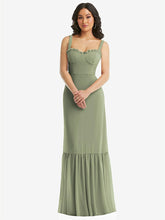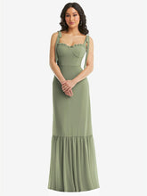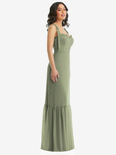 【NEW】【STYLE: 1570】タイショルダー ビュスティア ボディス フリルヘム マキシ ドレス【COLOR: Sage】【SIZE: 00-30W】