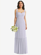 【NEW】【STYLE: 1570】タイショルダー ビュスティア ボディス フリルヘム マキシ ドレス【COLOR: Silver Dove】【SIZE: 00-30W】