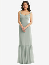【NEW】【STYLE: 1570】タイショルダー ビュスティア ボディス フリルヘム マキシ ドレス【COLOR: Willow Green】【SIZE: 00-30W】