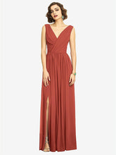 Lux Chiffonで作られたこのフルレングスのVネックドレスは、流れるドレープネックリンラインのディテールを備えており、その前後のスカートにわずかなシラーリングが特徴です。スリットフロントスカートは、大胆でスパイシーなタッチに追加されます。