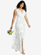 【NEW】【STYLE: 2894】ノースリーブ ドレープ シフォン マキシ ドレス 前面 スリット【COLOR: Bleu Garden】【SIZE: 00-30W】